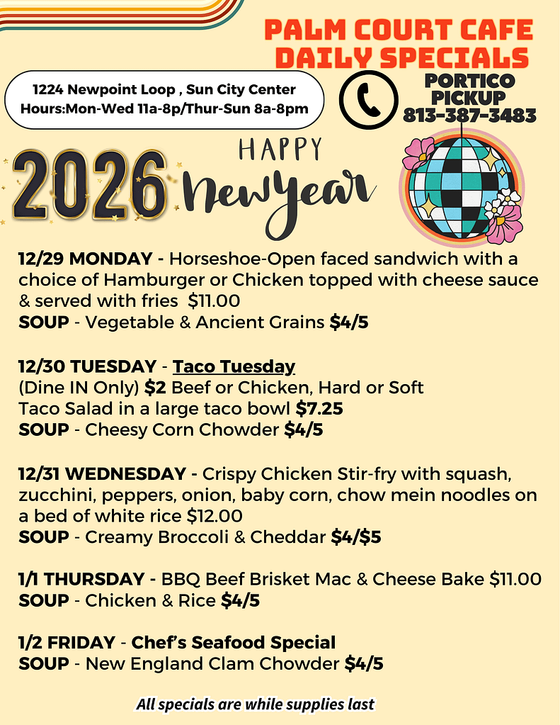 Palm Court Cafe Specials