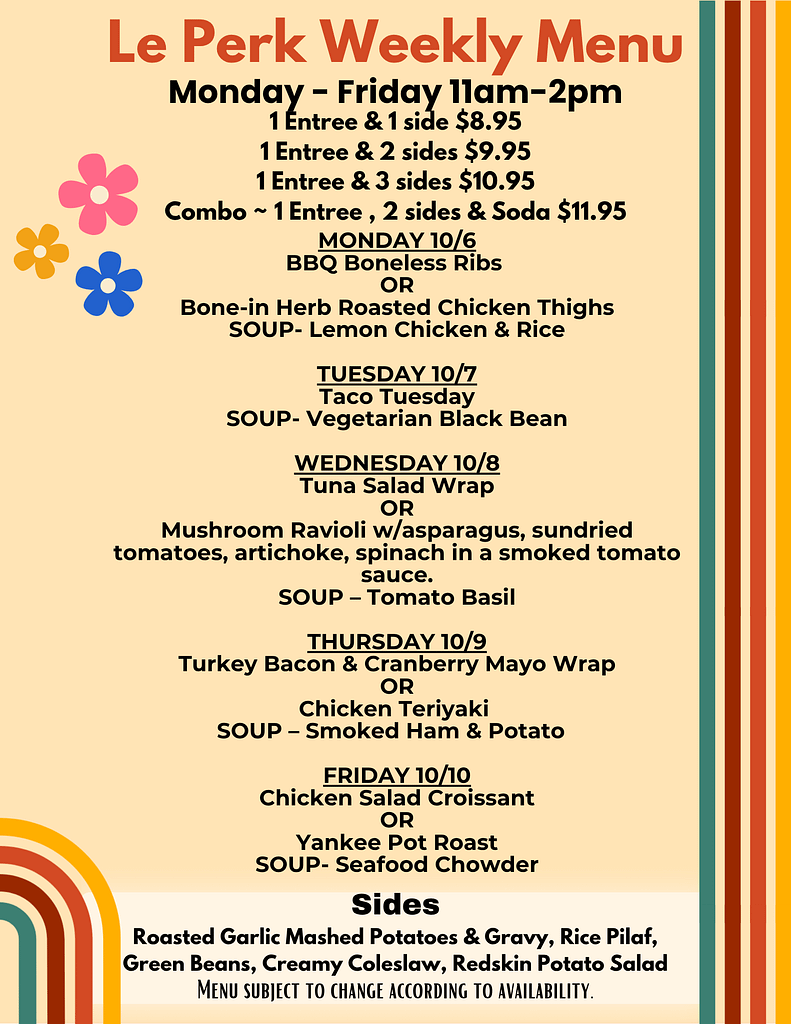 10/8 WEDNESDAY – Country Fried Chicken w/ Sausage gravy, Mash Potato & Honey Roasted Carrots. $12